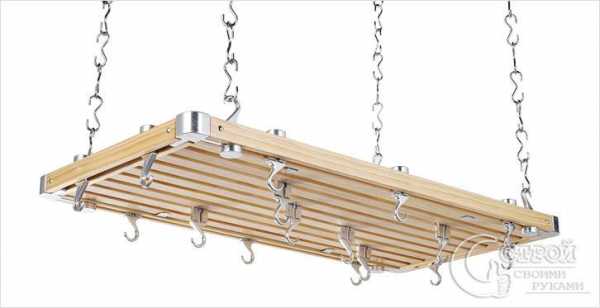 Любые подвесные конструкции, которые крепятся к потолку, в целях безопасности должны быть установлены максимально надежно, чтобы тяжелая утварь не рухнула вместе с рейлингом на хозяйку кухни.