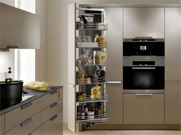 Торцы шкафов или небольшие простенки иногда также могут стать местом для расположения рейлинга. Иногда остается 5-10 см между холодильником и пеналом. В этом пространстве можно разместить сверхузкое карго с рейлинговой системой, на которую можно подвесить длинные поварешки, соусные ложки, шумовки и т.п.