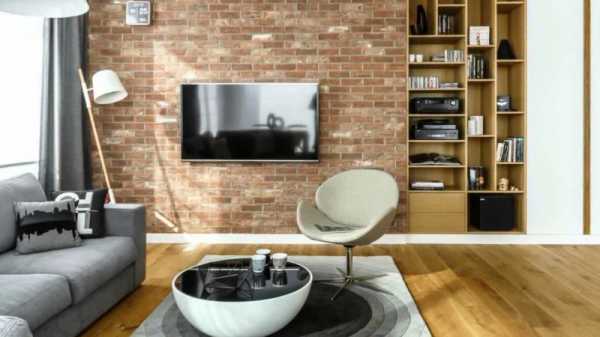Жемчужиной квартиры является стена, оформленная декоративным кирпичом. Не менее эффектно смотрится потолок с грубыми балками из древесины.