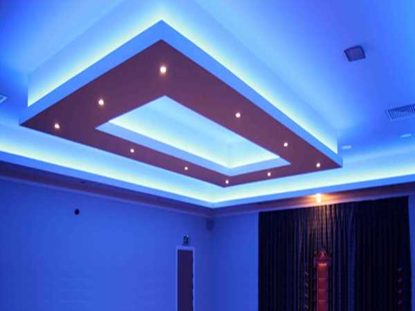 Фальшь-потолок. Его конструирование отнимает много сил, времени и денег. Но дополнительно к такой плоскости идет и светодиодная лента. С ее помощью можно разграничить участки помещения по функционалу. Профессионалы по установке различают накладные (между основаниями и панелью не остается полостей), натяжные (полотняные или пластиковые) и подвесные (требуют для себя наличия каркаса, прекрасно скрывают провода).