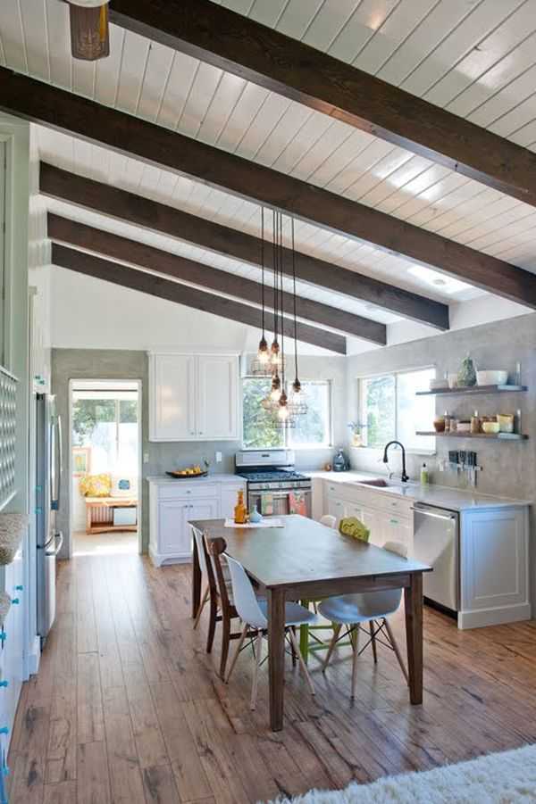 - Объедините кухню со столовой или гостиной. Визуальный контакт с другим помещением придаст интерьеру дома некую лёгкость и открытость.