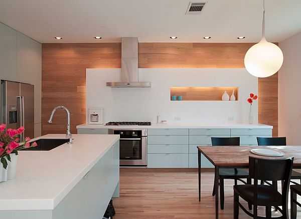 Лёгкий и свежий дизайн современной кухни