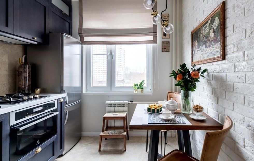 например, для увеличения полезной площади, обеденную зону можно перенести в другое место, барная стойка на маленькой кухне в хрущевке будет смотреться намного стильнее, чем непропорциональный стол. Хотя круглый стол на кухне хрущевки небольших размеров может стать неплохой альтернативой.