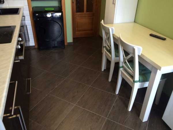 Рабочий фартук облицевали «кераминовской» плиткой типа «кабанчик» (очень не люблю скинали). На пол уложили плитку российского производства нейтрального серо-коричневого цвета.
