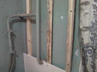 Так как у меня опыта работы с алюминиевым профилем не было и чтобы не тратить лишнее, ГВЛ нашивала на деревянный каркас. Бруски для каркаса, кстати, достались мне абсолютно бесплатно: я работаю в фирме по продаже ЛДСП и бесплатные бруски для каркаса – это разобранные поддоны из под ЛДСП.Обшивать понадобилось только две стены. Одна из двух оставшихся стен – это стена к туалету, а её когда-то уже строители сносили и строили заного из ГВЛ. А вторая – это стена под монтаж встроенной кухни, её по определению не стоит обшивать.