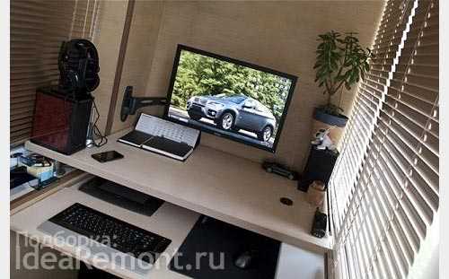На фото: встроенный стол создает уютное рабочее место на балконе