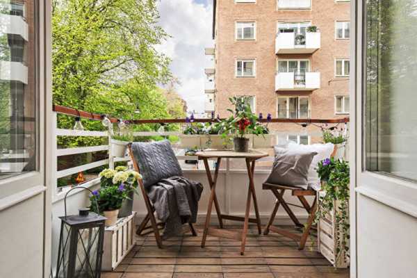 Хотите превратить свой типовой балкон в модный и европейский? Для этого потребуется полосатый тканевый навес, столик и стулья на металлических ажурных ножках и конечно же цветы. Европейский балкон не допускает хранения вещей. Это просто небольшая сцена, где хозяин балкона аристократично распивает кофе.