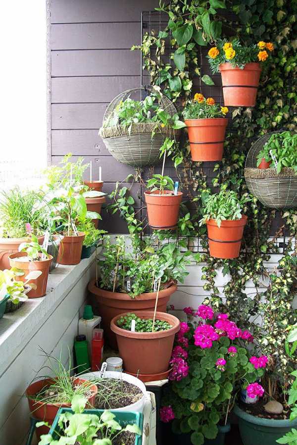 На фото: цветы и садовая мебель на балконе