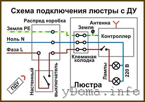 В статье «Как подключить люстру» подробно рассмотрены варианты подключения люстры без дистанционного управления к электропроводке.