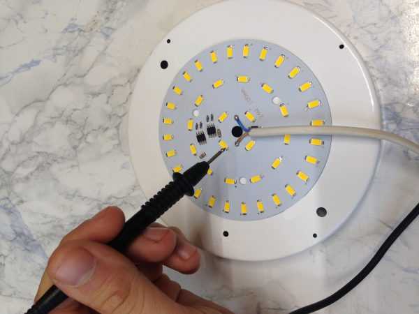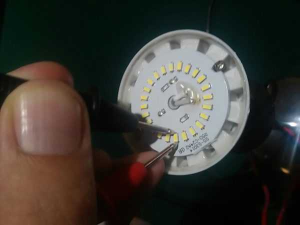 Важно, чтобы лампа в этот момент была подключена к сети. Как только вы замкнете контакты на сгоревшем светодиоде, прибор загорится. Если этого не произойдет, то, возможно, перегорело более одного диода.