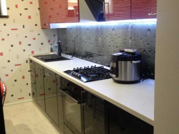 Линейная планировка, называемая однорядной, отлично впишется в маленькую площадь, так как подразумевает расстановку техники и шкафов вдоль одной из стен. Подойдет для семьи из нескольких человек.