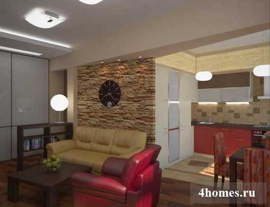 Стена между гостиной и кухней в хрущевках не является несущей, и есть все шансы согласовать такой проект переделки по всем правилам.