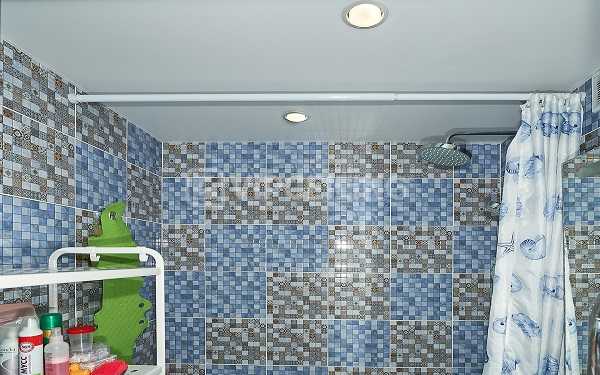 Керамическая плитка лучше всего подойдет для стен и пола, а для потолка – натяжное покрытие, отлично скрывающее недостатки.