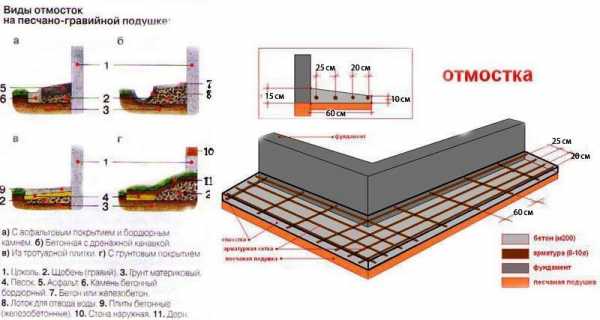 Особенности строительства разных вариантов отмостки