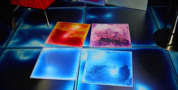 «Живая» плитка – плитка, меняющая рисунок в ответ на прикосновения, часто снабжается подсветкой. Представляет собой многослойную спрессованную поликарбонатную пластину с гелем, который растекается при надавливании, а затем возвращается в прежнюю форму.
