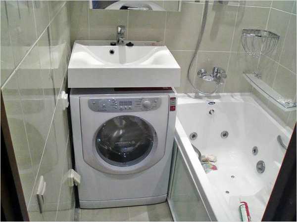 Благодаря тому, что сейчас можно купить огромное разнообразие сантехники и техники, то есть из чего выбрать очень компактные варианты. К примеру, выбрать такую раковину, под которую можно установить узкую стиральную машину. И тогда у вас будет достаточно места и для других приспособлений.