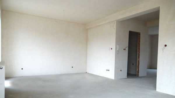 - Стены без отделки (бетон или кирпич, строительные блоки), внутренние перегородки — в зависимости от договора: могут стоять, а могут — нет.