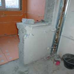 Практически любой ремонт начинается с демонтажных работ: снимаются старые обои, лакокрасочное покрытие, полы, ламинат, демонтируются не нужные перегородки, снимается плитка, старый фаянс. Главная задача демонтажных работ, это подготовка основания (стены, потолок, пол) к дальнейшей отделке. Основание должно быть сухим, очищено от всех строительных материалов, использованных ранее. Квартирные перегородки возводятся из пеноблоков, кирпича, пазогребневых блоков и гипсокартона. Каждый из этих материалов имеет свои плюсы и минусы, на наш взгляд , самым оптимальным решением является возведение перегородок из Пеноблоков толщиной 10 см, — при повышенных требования к шумоизоляции помещений, возможно возведение перегородок из пеноблока толщиной 15 см, это съедает дополнительную площадь помещения, зато придает стене фундаментальность и отличные шумоизоляционные качества. Перегородка из пеноблока крепится только к полу и боковым стенам, между стеной и потолком остается зазор 3 см — это необходимо для того, чтобы перекрытие при усадке дома не давило на перегородку, это требование особенно важно в новостройках, т.к усадка в течении 2-3 лет может существенно испортить сделанный ремонт. Обязательным условиям возведения перегородок является армирование каждого 3-5 ряда и привязка к стенам.