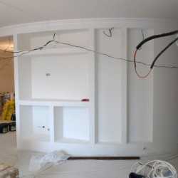 После выполнения штукатурных работ начинается этап электромонтажных работ. Для выполнения электромонтажных работ необходимо составить план размещения розеток, выключателей и основных потребителей, далее на основании этих данных составляется проектный расчет нагрузок и выполняется комплекс работ по монтажу проводки. Также хотелось бы объяснить, почему инженерные работы выполняются после штукатурки. Проблема заключается в том ,что при проведении работ до штукатурки, сильно страдает точность установки подрозетников и выводов под смесители, так как неизвестна геометрия помещения, которая формируется после штукатурки. Работу приходится разрывать на куски, что сказывается на результате не в лучшею сторону. Более того, очень часто, при проведении штукатурных работ после электрики возникают проблемы с повреждением электропроводки уложенной по полу. — по этим причинам мы рекомендуем делать электрику после штукатурки.