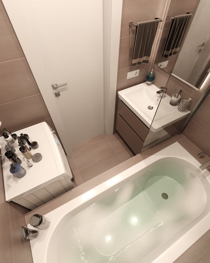 Если загромоздить это, любимое многими помещение различным вспомогательным оборудованием, например, стиральной машиной, то никакой дизайн интерьера не поможет. Не лишним также будет сделать экран под ванной, ведь он придаст интерьеру законченный вид и добавит функционала помещению.