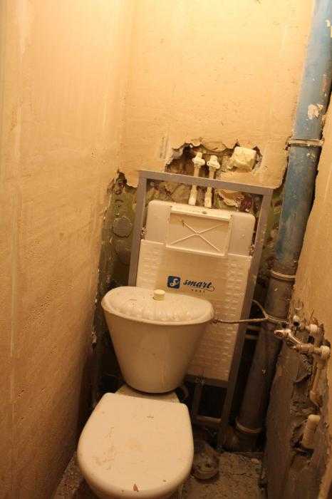 Подробный фотоотчет ремонта в маленьком туалете 1 кв.м. с потайным люком (23 фото)