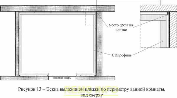 — выбираем кафельную плитку для нашего помещения. Определяемся с цветовой гаммой, размером плитки, её расположением. Если в дизайне помещения будет использоваться рисунок, выложенный кафелем, планируем его расположение.