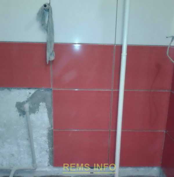 Демонтируем старую систему разводки воды. Может быть, у Вас она как то по-человечески сделана. Я про свою разводку много писать не буду. Ради хохмы просто посмотрите фото ниже, как всё было. Это «новый вариант», справа и слева от ванны видна старая разводка металлическими трубами советских времен (она обрезана).