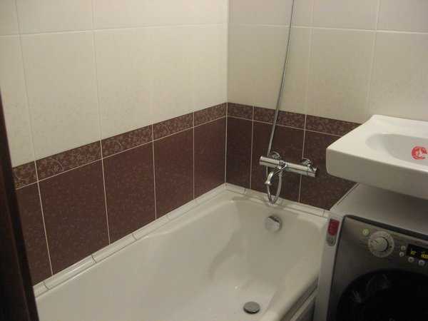 Совет: Для настолько малеханьких санузлов, как в хрущевках, лучше подходят такие варианты, как угловая ванна, низкая по профилю раковина, под которой располагается стиральная машинка.
