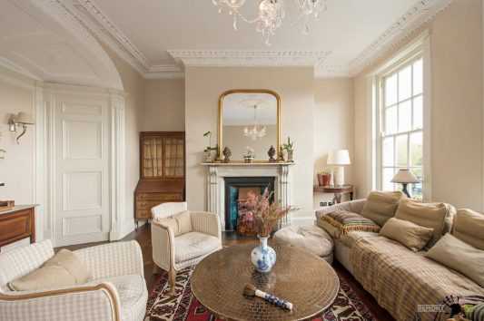 Особый уют в комнате всегда дает камин, около него собирается семья и гости. Если в зале частенько предполагается проводить трапезы, поместите посередине большой стол. Но самый стандартный вариант – это уютные кресла, комфортный диван, маленький журнальный столик.
