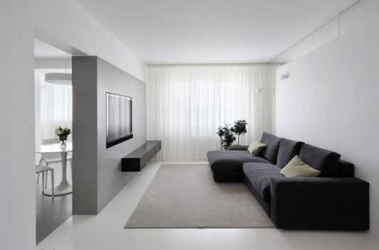 Благодаря этому приему комната будет казаться больше, и на первый план выйдет красивая современная мебель.