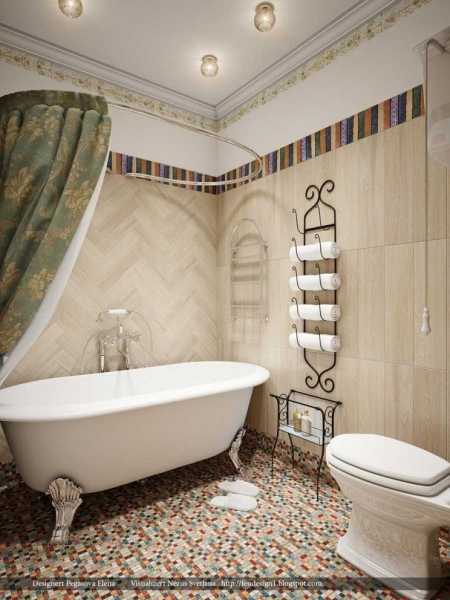 Стиль барокко можно выгодно подчеркнуть декором-лепниной. А вот унитаз, ванну и раковину можно выбрать в кремовых оттенках. Душевая кабина в такой стиль не впишется. - Не менее популярен дизайн ванной комнаты в синих токах. Проект морской тематики всегда актуален. Крупная кафельная плитка синих цветов хорошо сочетается с бежевой мозаикой. Можно и наоборот разбавить светлый кафель синими оттенками. Такое решение заметно углубит пространство маленького помещения.