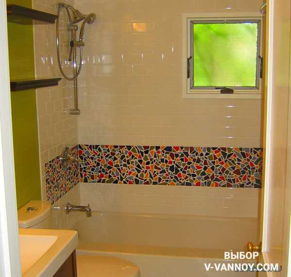 - чтобы белый цвет не придавал помещению сходство с больничной палатой, используйте цветные вставки, мозаику, панно.