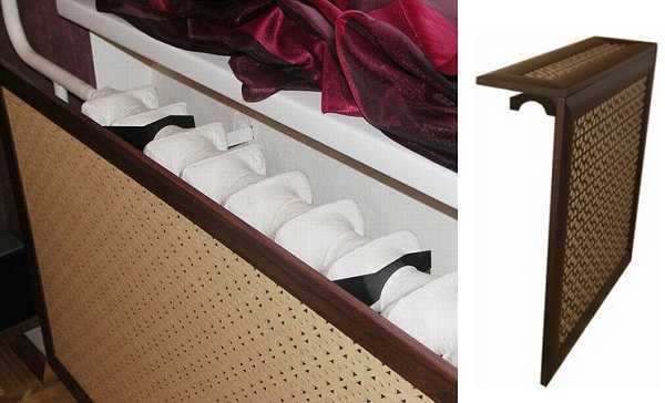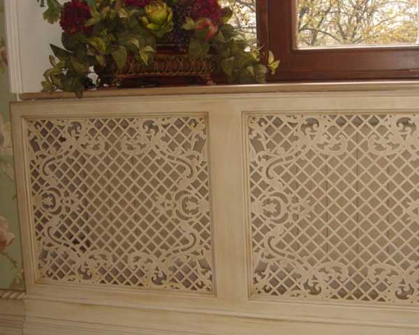 Решетка батареи – декоративные экраны на батарею отопления, радиаторные вентиляционные и защитные накладки, деревянные и стеклянные варианты на чугунную модель