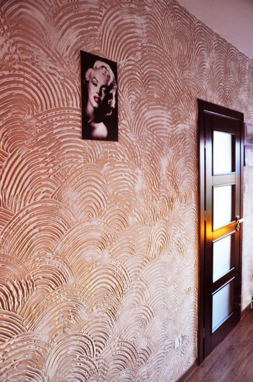 Сложнее будут обстоять дела с фактурой, которая делалась подручными материалами. Такой рисунок повторить будет сложно. Потому перед началом ремонтных работ нужно потренироваться на отдельной поверхности или вспомнить каким образом выполнялся процесс.