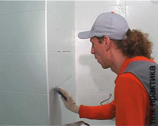 - Удалить излишки герметика с помощью эластичного шпателя так, что бы форма силиконового шва повторяла форму затертых межплиточных швов.