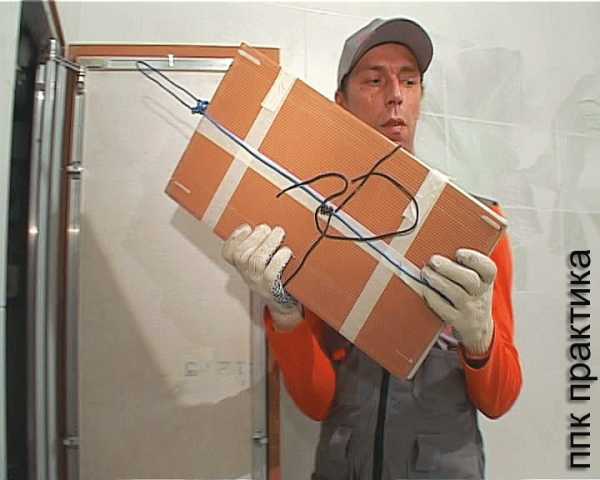 7. Перед укладкой плитки обязательно нужно подвесить на дверцы груз, равный весу плиток, которые будут на них находиться. Павел советует использовать для этого пластиковые мешки.