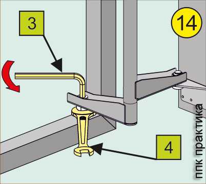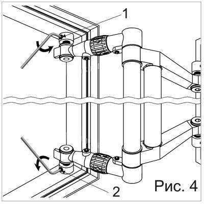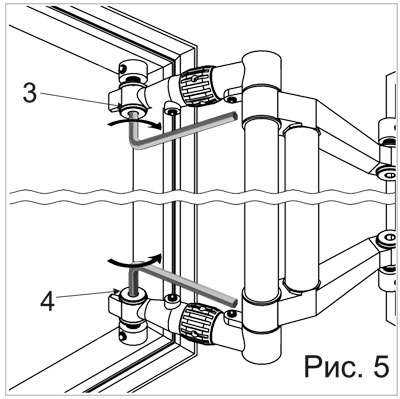 - Крепежные болты 3 и 4 вращать в обратную сторону