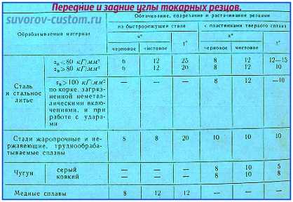 Ну и ниже будут показаны таблицы и рисунок с основными углами токарных резцов.