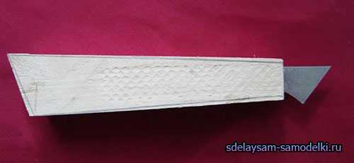 8. С помощью острого ножа в деревянной заготовке делают углубление так, чтобы хвостовик в него вошел плотно.