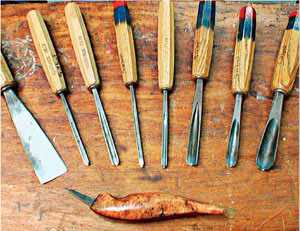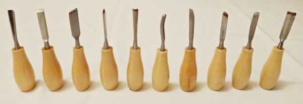 Инструменты должны быть сделаны на совесть, из стали высокого качества. Кроме этого они должны быть отлично заточены. Инструменты низкого качества крошат и мнут древесину. Основные инструменты для резьбы: