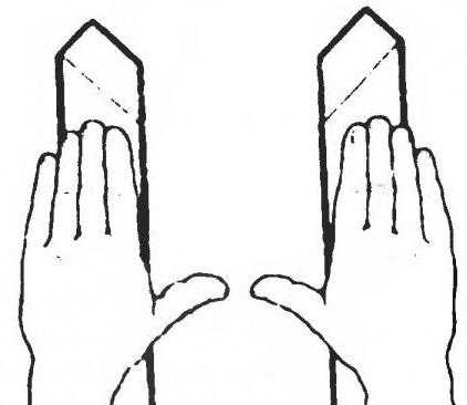 Чтобы определить является ли резец правым или левым, поступают так: накладывают на него ладонью вниз руку таким образом, чтобы пальцы были направлены к вершине резца (см. рис. 22). Правым будет резец, главная режущая кромка которого окажется со стороны большого пальца при наложении правой руки ( см. рис. 22, а), левым — если главная режущая кромка окажется со стороны большого пальца при наложении левой руки (см. рис. 22, б).