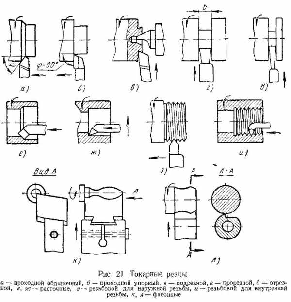 Фасонные резцы (рис. 21, к, л) используют для обработки различных фасонных поверхностей.