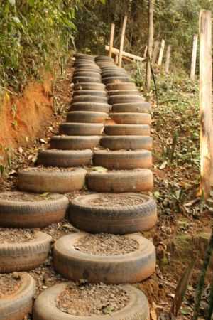 Садовые дорожки из покрышек: технология мощения на участке со сложным рельефом