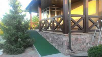 Каучуковое покрытие рулонное рекомендуем также укладывать на беседках, террасах, пандусах и даже на летней кухни, потому что оно моется легко, не требует особого ухода ни зимой, ни летом.