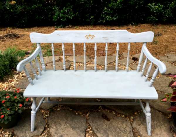 Конечно же, нельзя не упомянуть стиль Прованс, позаимствованный у жителей провинций — Франции. Скамейка должна быть достаточно скромной, немного под старину, в винтажном направлении, белого, синего, фиолетового или голубого оттенков.