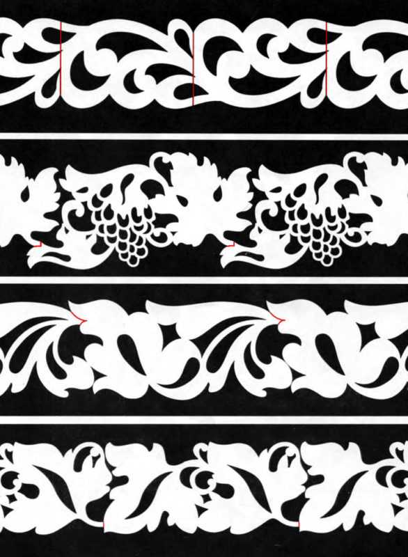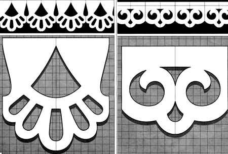 ΠΠΎΠ»ΡΡΠΈΠ²ΡΠΈΠΉΡΡ ΡΠ²Π΅Π»ΠΈΡΠ΅Π½Π½ΡΠΉ ΡΠ΅ΡΡΠ΅ΠΆ ΠΏΠ΅ΡΠ΅Π½ΠΎΡΡΡ Π½Π° ΠΊΠ°ΡΡΠΎΠ½, Π° ΠΏΠΎΡΠΎΠΌ ΠΈΠ· Π½Π΅Π³ΠΎ Π²ΡΡΠ΅Π·Π°ΡΡ Π³ΠΎΡΠΎΠ²ΡΠ΅ ΡΠ°Π±Π»ΠΎΠ½Ρ Π½Π°Π»ΠΈΡΠ½ΠΈΠΊΠΎΠ² Π½Π° ΠΎΠΊΠ½Π°. ΠΠ»Ρ ΠΊΠ°ΠΆΠ΄ΠΎΠ³ΠΎ ΡΠ·ΠΎΡΠ° ΠΈΠ»ΠΈ ΡΠ»Π΅ΠΌΠ΅Π½ΡΠ° Π΄Π΅Π»Π°ΡΡ ΠΎΡΠ΄Π΅Π»ΡΠ½ΡΠΉ ΡΠ°Π±Π»ΠΎΠ½. ΠΠ°ΡΠ΅ΠΌ Π΅Π³ΠΎ ΠΊΠ»Π°Π΄ΡΡ Π½Π° Π΄ΠΎΡΠΊΡ, ΠΈΠ· ΠΊΠΎΡΠΎΡΠΎΠΉ Π±ΡΠ΄Π΅Ρ Π²ΡΠΏΠΈΠ»ΠΈΠ²Π°ΡΡΡΡ Π½Π°Π»ΠΈΡΠ½ΠΈΠΊ ΠΈ ΠΎΠ±Π²ΠΎΠ΄ΡΡ ΠΊΠ°ΡΠ°Π½Π΄Π°ΡΠΎΠΌ.
