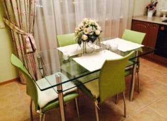 При использовании стеклянной панели в качестве столешницы сам стол лучше выбрать из дерева. Это добавит конструкции прочности.