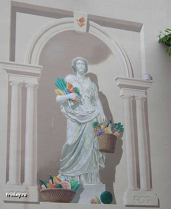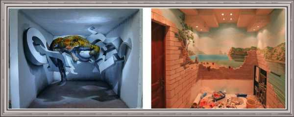 Если вы создадите специальные выпуклости на стенах, то вам не нужно будет знать специальные приемы рисования для того, чтобы создать трехмерные изображения. Объемный эффект будет заложен самими особенностями поверхности, на которой производится роспись.