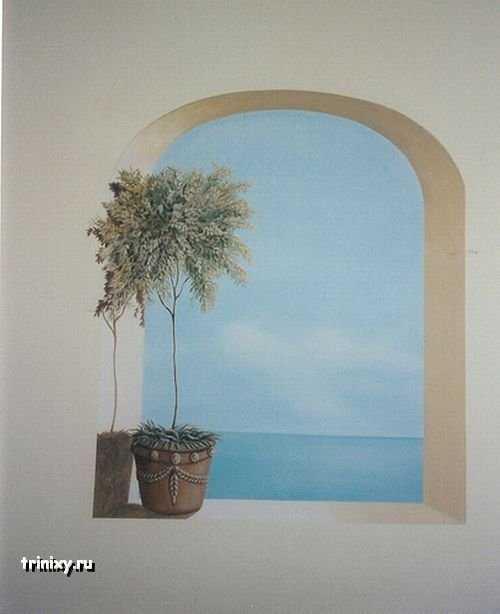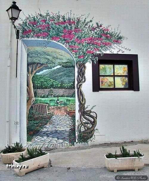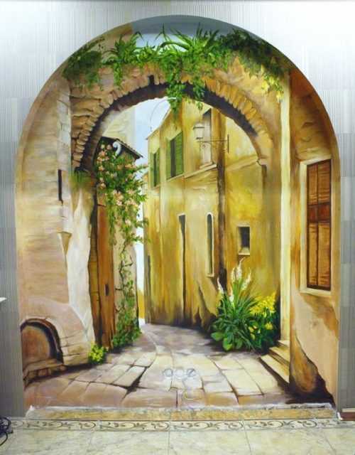 Также, используется роспись с мотивами пейзажей, якобы находящихся по ту сторону стены. Что ни говори – а выглядит потрясающе!