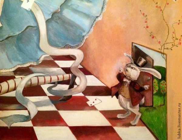 В качестве сюжета мы выбрали героя Льюиса Кэрролла выросшую Алису и белого кролика.